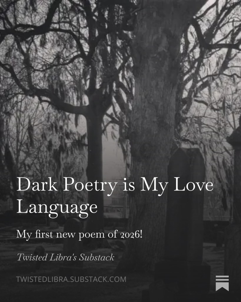 From the Substack… Posted byTwisted LibraJanuary 19, 2026Posted incemetery, PoetryTags:author, blog, cemetery, dark, death, goth, grave, graveyard, libra, Poetry, self-published, substack, writer Enjoy my latest Substack post: Until next time… Bury your email… Subscribe Join 73 other subscribers Tell your friends: Email a link to a friend (Opens in new window) Email Share on TumblrTweet Share on Threads (Opens in new window) Threads Print (Opens in new window) Print More Share on Reddit (Opens in new window) Reddit Pocket Share on Telegram (Opens in new window) Telegram Share on WhatsApp (Opens in new window) WhatsApp Like Loading... Related Published by Twisted Libra Creator of the Twisted Libra Cemetery, and lover of all things macabre! View more posts